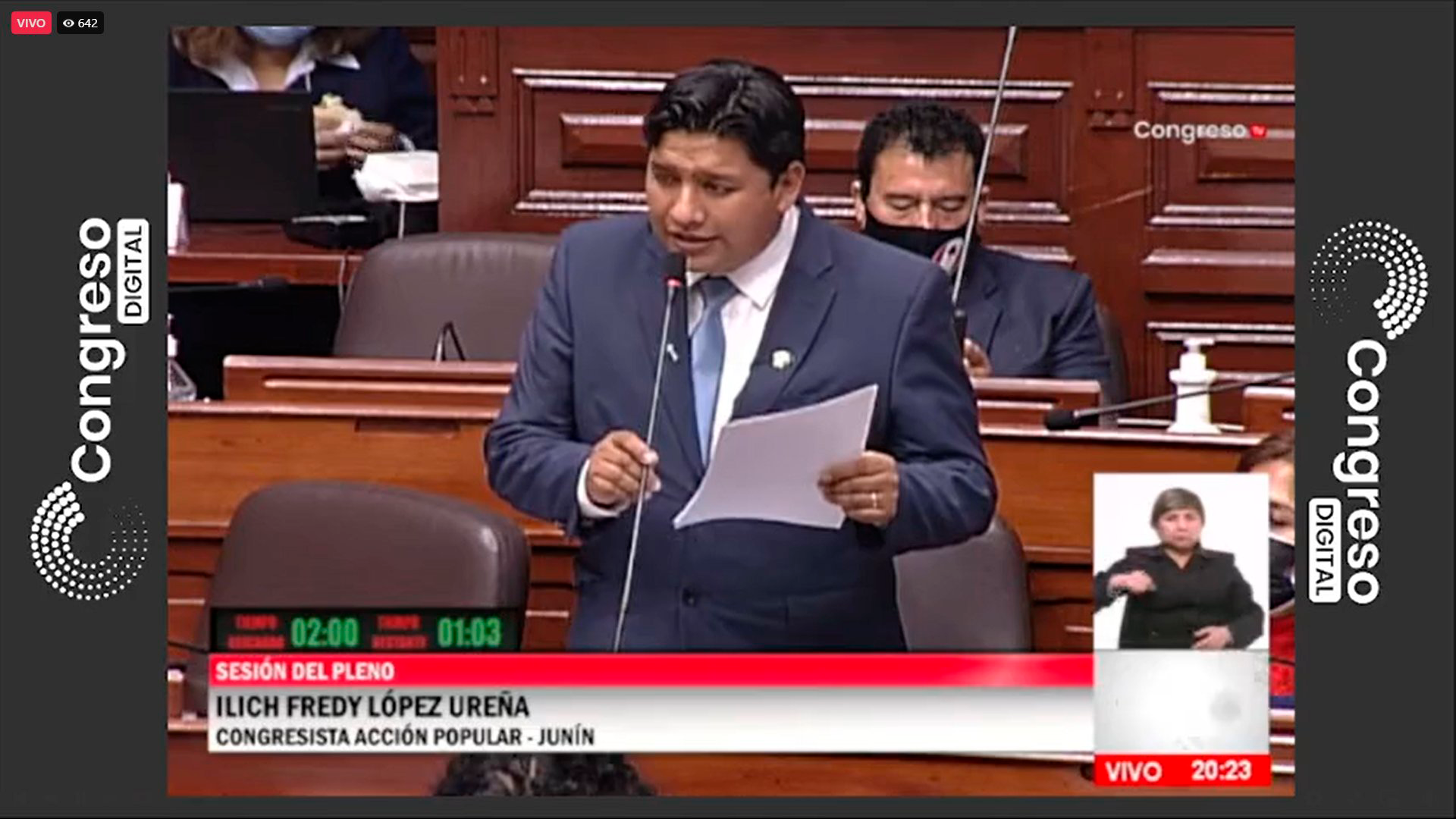 En marzo de este año, Ilich Lopez se mostró en contra del adelanto de elecciones y del recorte del periodo congresal.