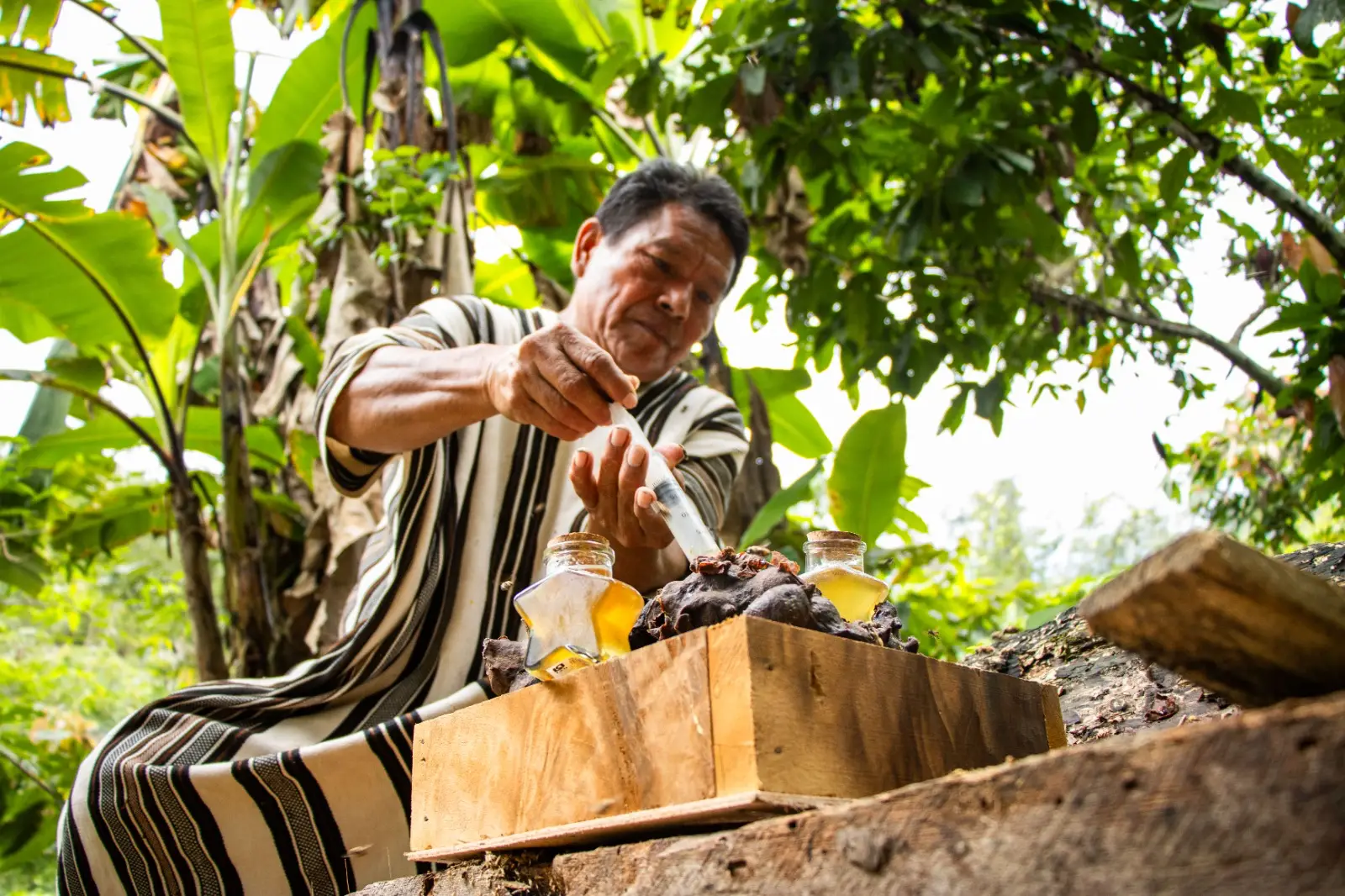 El proceso incluye el trasiego, que consiste en trasladar los panales silvestres a colmenas tecnificadas para obtener miel sin dañar el ecosistema. Esta práctica contribuye a la conservación de la biodiversidad y rescata conocimientos ancestrales asháninkas, que utilizan la miel con fines medicinales y alimenticios.