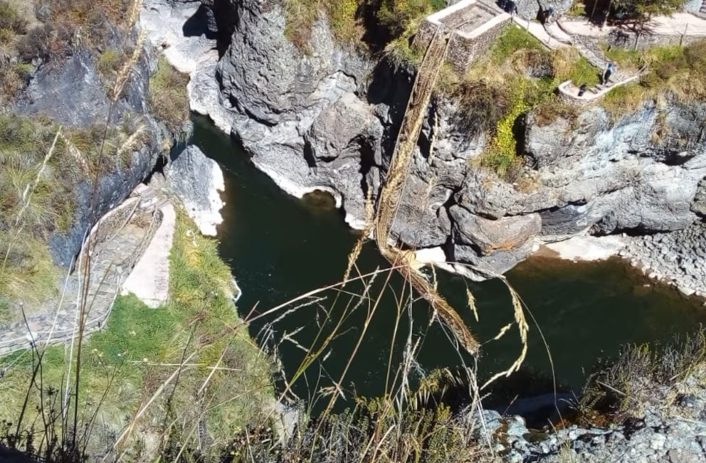 El histórico puente inca de Q’eswachaka sufrió un atentado que pone en riesgo una tradición viva con siglos de historia. Especialistas de la Dirección Desconcentrada de Cultura del Cusco confirmaron el daño. El puente, ubicado en el distrito de Quehue, provincia de Canas, perdió una de sus bases principales. La estructura, hecha con paja trenzada, muestra un corte intencional en uno de sus extremos.