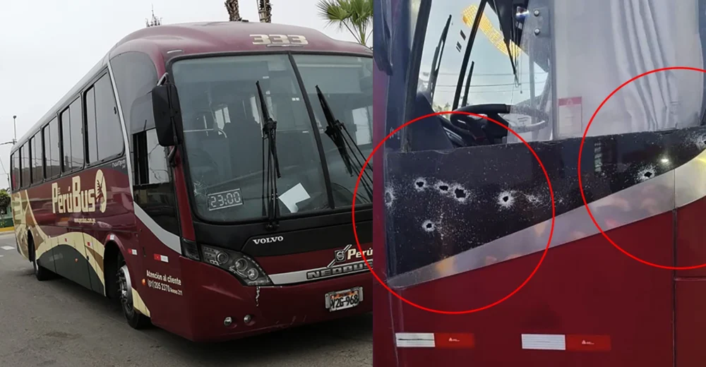 Un bus interprovincial de la empresa Perú Bus fue atacado a tiros en la madrugada de este domingo en plena Panamericana Sur, a la altura del peaje de Villa en Lima. El conductor del vehículo fue perseguido por dos sujetos en motocicleta, quienes dispararon al menos cuatro veces contra la unidad. Aunque se reportaron momentos de pánico, afortunadamente no hubo heridos entre los pasajeros.