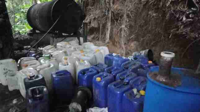 También se encontró otro laboratorio rústico que servía para el procesamiento de insumos químicos, además de dos tanques de agua, un generador y un motor eléctricos, cocinas y un horno metálico, entre otros.