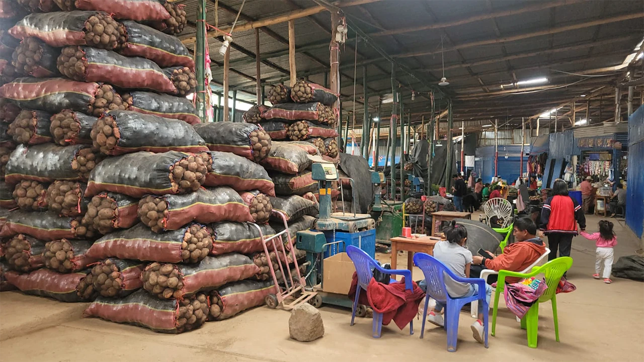 La papa blanca, por su parte, se vende entre 70 y 80 céntimos el kilo al por mayor, mientras que la papa canchán se encuentra a 80 céntimos por kilo en este mercado mayorista.