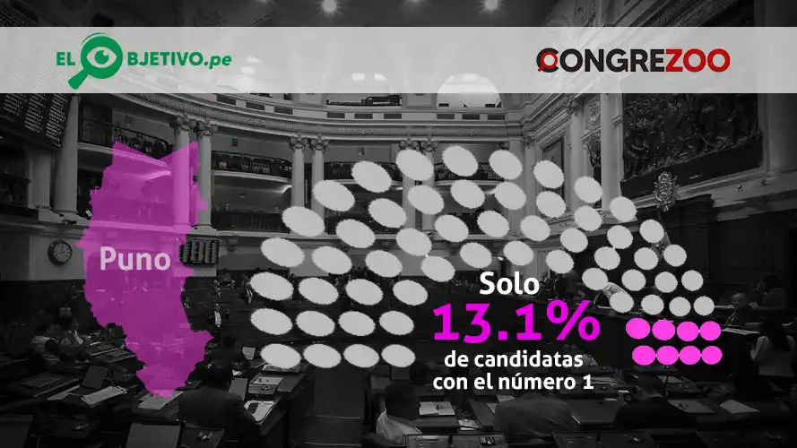 El reportaje multimedia publicado por Congrezoo revela que ninguna región supera el 35% de candidaturas femeninas con el número 1 para el Parlamento. Es decir, la situación es grave a nivel nacional, pero hay regiones que están incluso peor: tal es el caso de Puno.