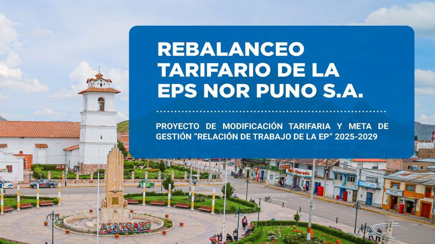 Puno, 21 de agosto de 2025.- La Superintendencia Nacional de Servicios de Saneamiento (Sunass) presentará, en audiencia pública, el proyecto de modificación del nivel y estructura tarifaria y la meta de gestión “Relación de trabajo” del estudio tarifario de la EPS NOR PUNO S. A., que le permitirá contar con más recursos para inversiones y mejoras en los servicios de agua potable y saneamiento.