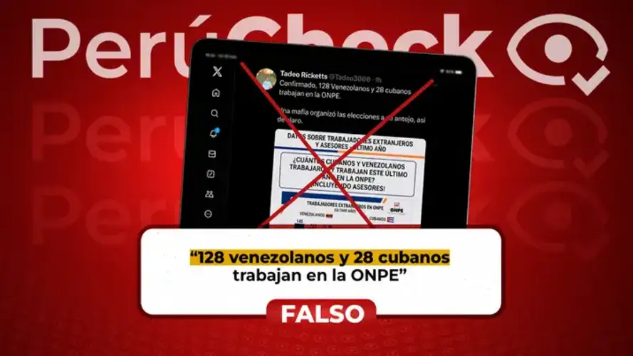 Una de las publicaciones más difundidas señala: “Confirmado, 128 venezolanos y 28 cubanos trabajan en la ONPE. Una mafia organizó las elecciones a su antojo”. Otra incluso afirma: “128 venezolanos y 28 cubanos en la ONPE, esto es una organización criminal”.