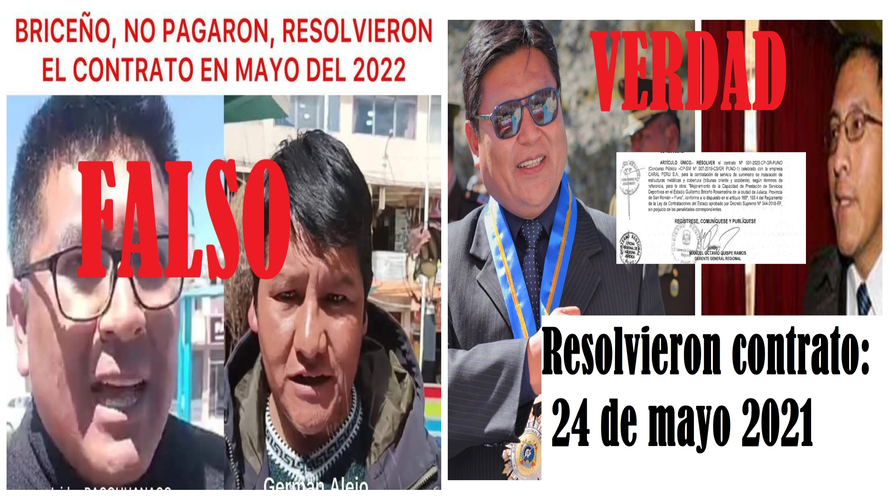 La mentira central: Afirma que Alejo resolvió el contrato con Caral Perú el 24 de mayo de 2022. En realidad, el contrato se resolvió el 24 de mayo de 2021, bajo la gestión de Agustín Luque Chaiña, firmado por su gerente regional, Manuel Octavio Quispe Ramos. Así lo demuestra el acta de resolución (ver fotografía adjunta).