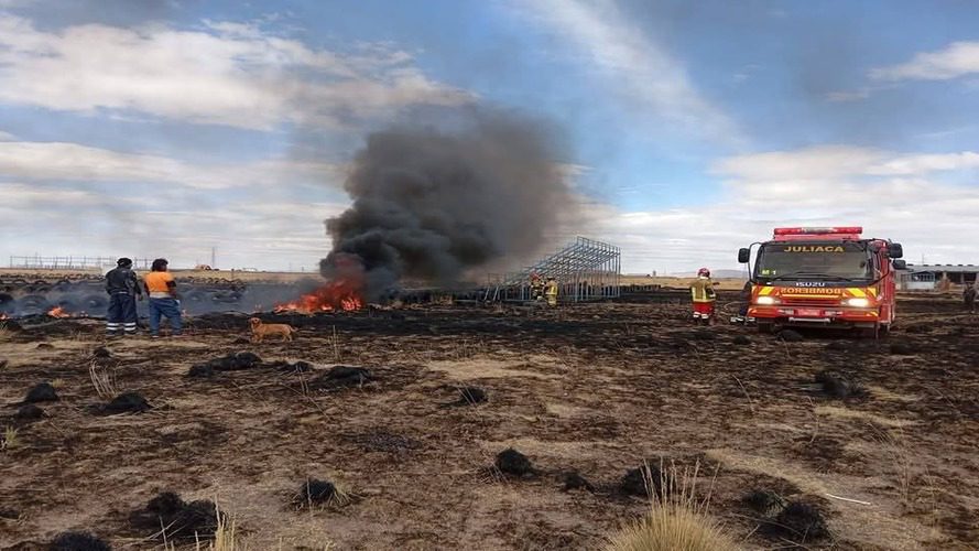 Efectivos de la Comisaría PNP Caracoto, junto a la Compañía de Bomberos de Juliaca, el Puesto de Auxilio Rápido (PAR) Néstor Cáceres Velásquez y el personal de Serenazgo de la Municipalidad Distrital de Caracoto, actuaron con celeridad para evitar que el fuego se propagara a zonas aledañas.