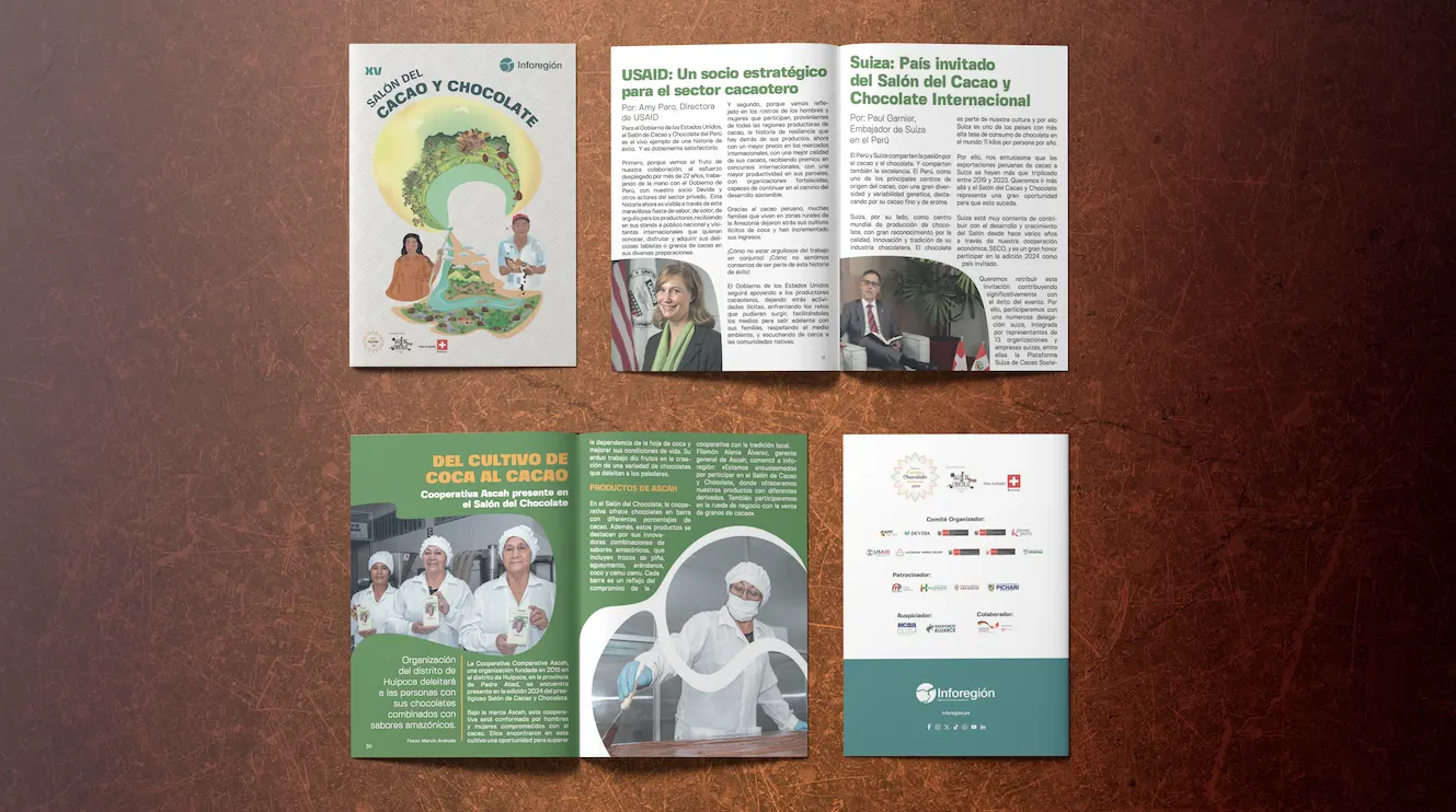 La revista también ofrece una visión integral del sector con entrevistas a representantes clave como la Asociación Peruana de Productores de Cacao – APPCacao, la Embajada de Suiza en el Perú, Usaid, Devida, el Ministerio de Desarrollo Agrario y Riego, el Gobierno Regional de Ucayali y Lutheran World Relief.
