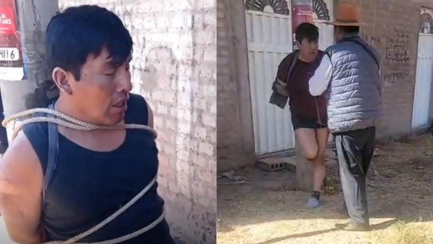 Inmediatamente los vecinos salieron de sus viviendas y atraparon al sospechoso, a quien ataron a un poste de alumbrado público para que delate a sus compinches.