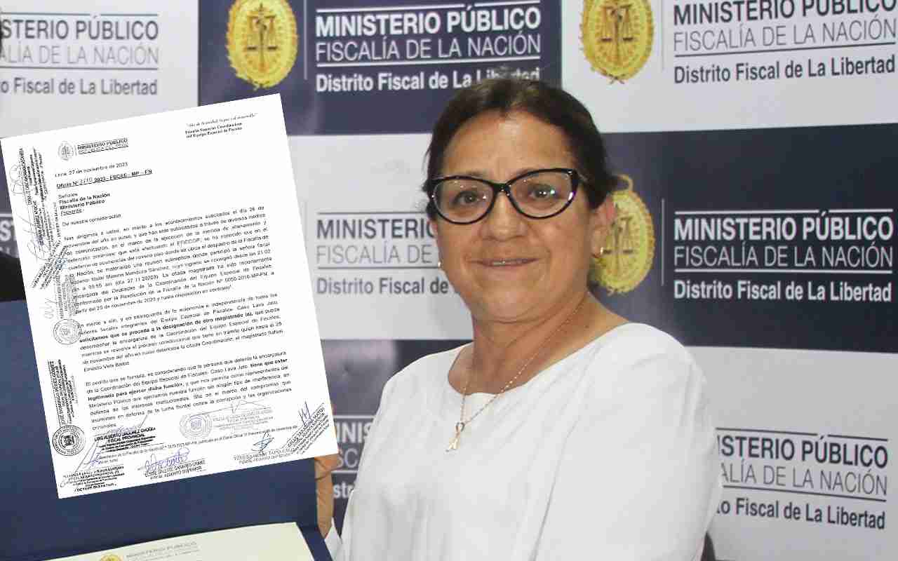 El Equipo Especial Lava Jato dirigió un oficio a la fiscal de la Nación, Patricia Benavides, en el que solicita el cambio de la fiscal Marena Mendoza Sánchez, recientemente designada coordinadora del grupo tras la suspensión de Rafael Vela el pasado 25 de noviembre.