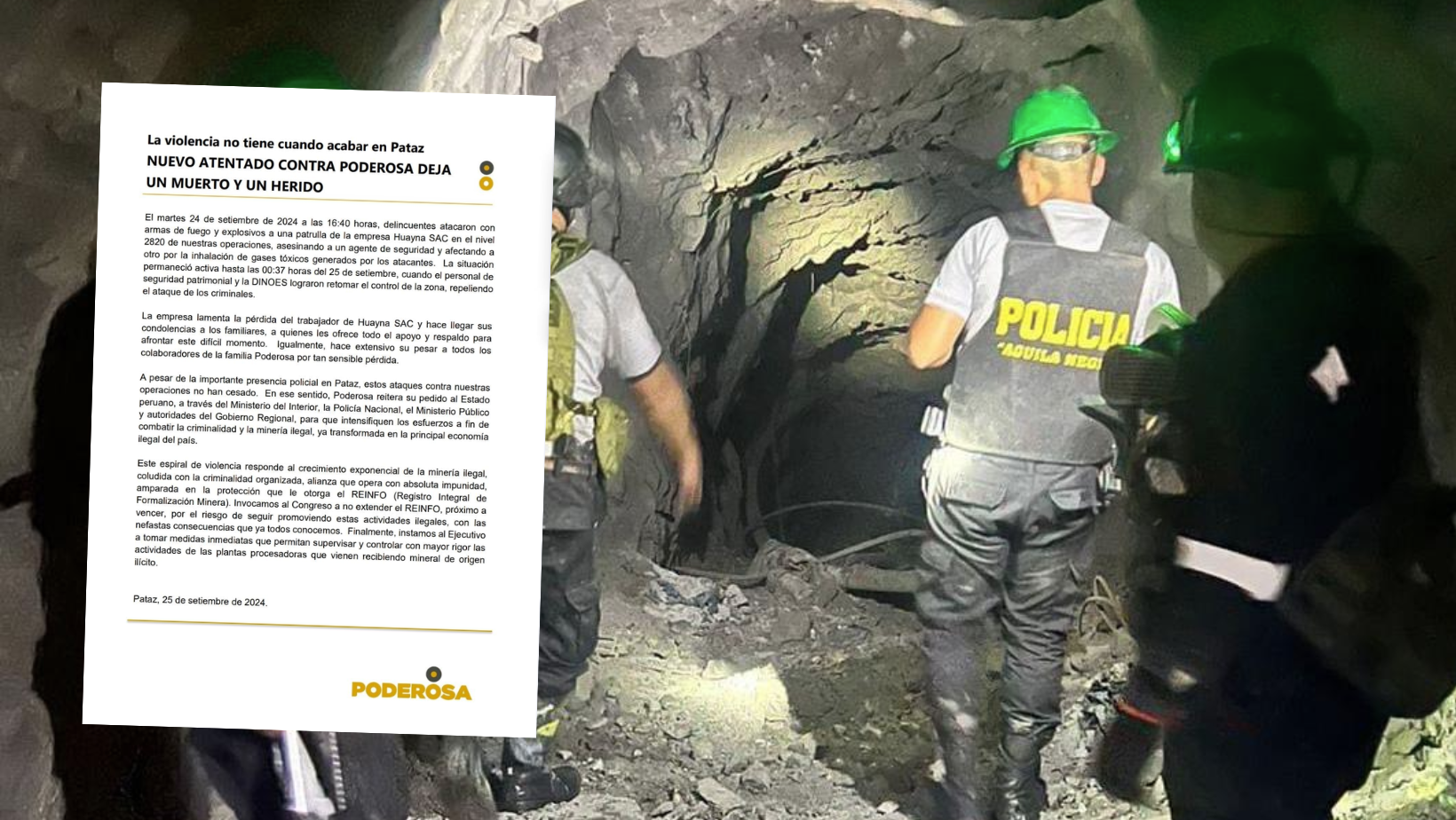 Delincuentes atacan nuevamente con armas de fuego y explosivos a una patrulla de la minera Poderosa en Pataz, dejando como saldo una persona fallecida y un herido.