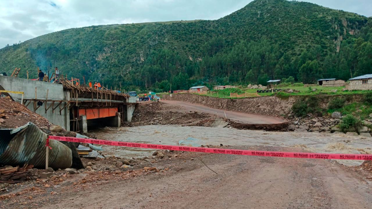 El colapso del puente provisional de San Lucas a causa de las intensas lluvias mantiene bloqueado la vía Los Libertadores a la altura de la zona de Rumichaca II, en el distrito de Vinchos, provincia de Huamanga, Ayacucho.