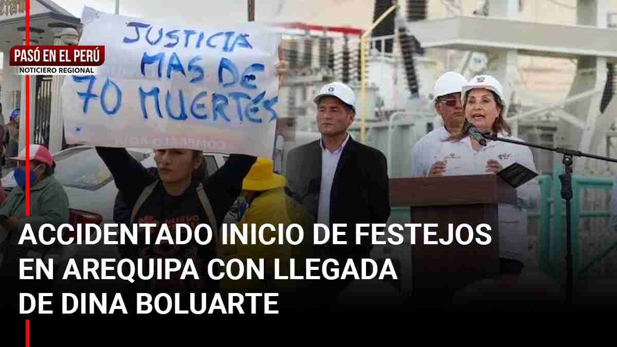 Pasó en el Perú | Arequipa. Inició el mes de aniversario de Arequipa pero no como se esperaba. Mientras que un numeroso contingente policial resguardaba la Plaza de Armas durante las actividades protocolares, otro grupo de policías reprimía manifestantes en Camaná, donde la presidenta Dina Boluarte llegó para inaugurar la ampliación de la subestación La Pampa. La visita de Boluarte fue sorpresiva, probablemente para prevenir que se organicen manifestaciones en su contra.