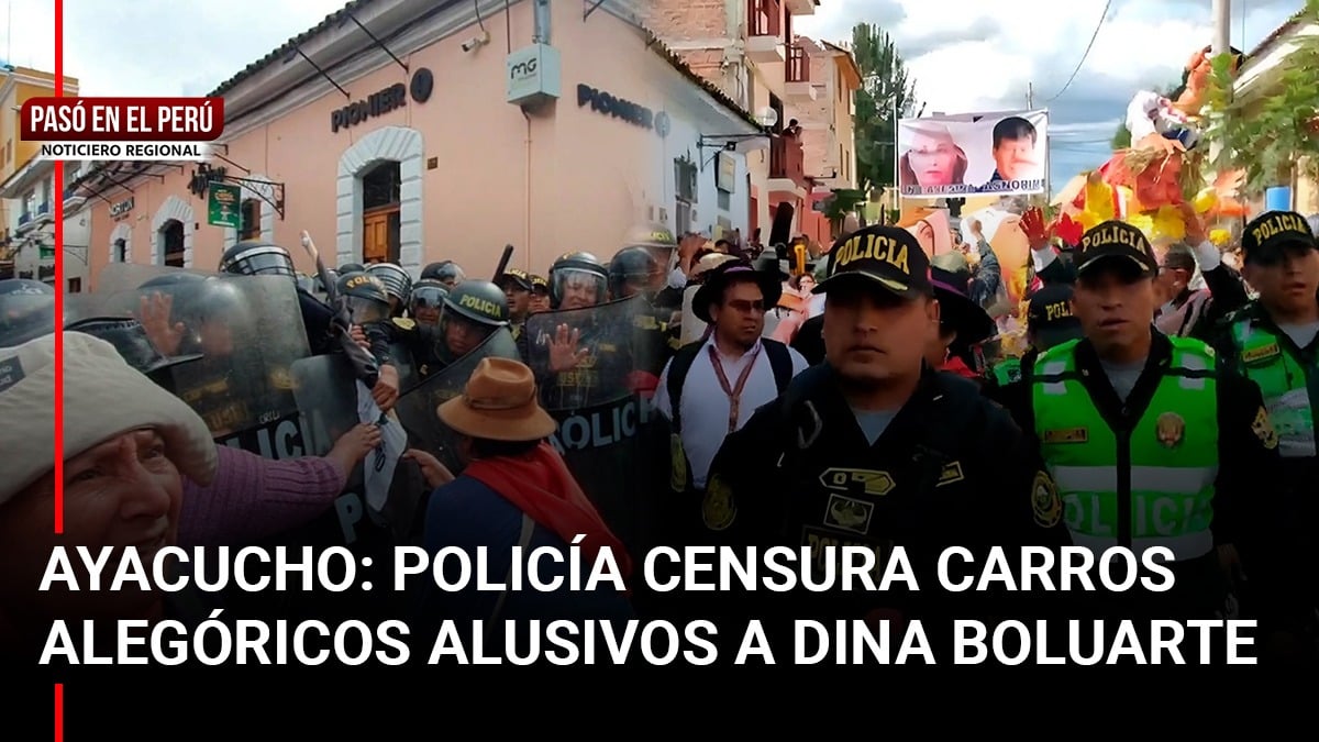 Pasó en el Perú | Ayacucho. En un incidente marcado por la censura durante el tercer día del carnaval ayacuchano 2024, un numeroso contingente policial bloqueó el desfile de carros alegóricos del Frente de Defensa del Pueblo de Ayacucho (Fredepa), que contenían mensajes alusivos a Dina Boluarte y Wilfredo Oscorima. Esta acción policial impidió que la comparsa desplegara su crítica pública por las principales calles de la ciudad, evidenciando una restricción a la expresión durante las festividades.