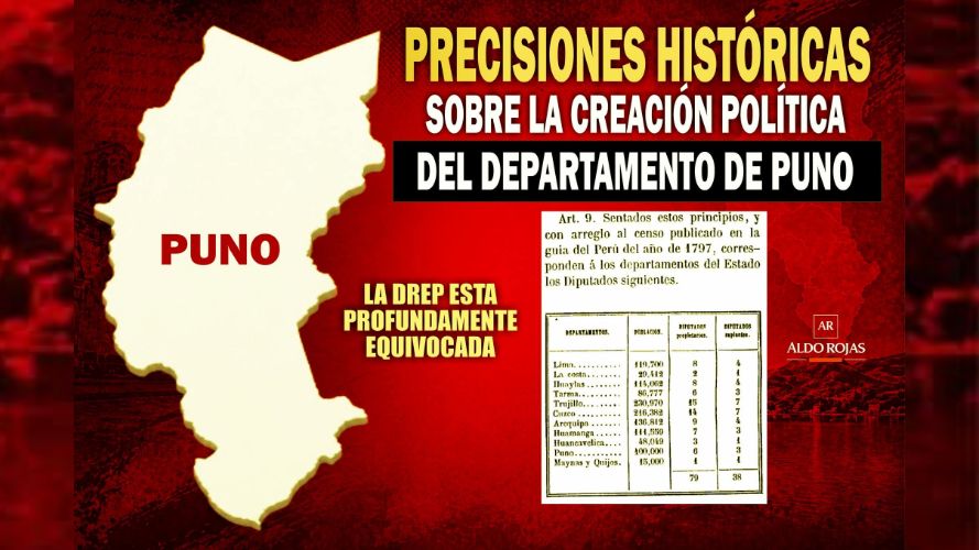 Sin embargo, la publicación de la DREP incurre en un error cuando afirma en su contenido que “Puno fue fundado el 26 de abril de 1822”. Esta afirmación genera confusión, porque no se trata de la fundación de la ciudad de Puno, sino del reconocimiento político del departamento en el marco de la organización electoral republicana. La ciudad de Puno tiene otra trayectoria histórica, y está vinculada al periodo colonial y al establecimiento de San Carlos de Puno en 1668.