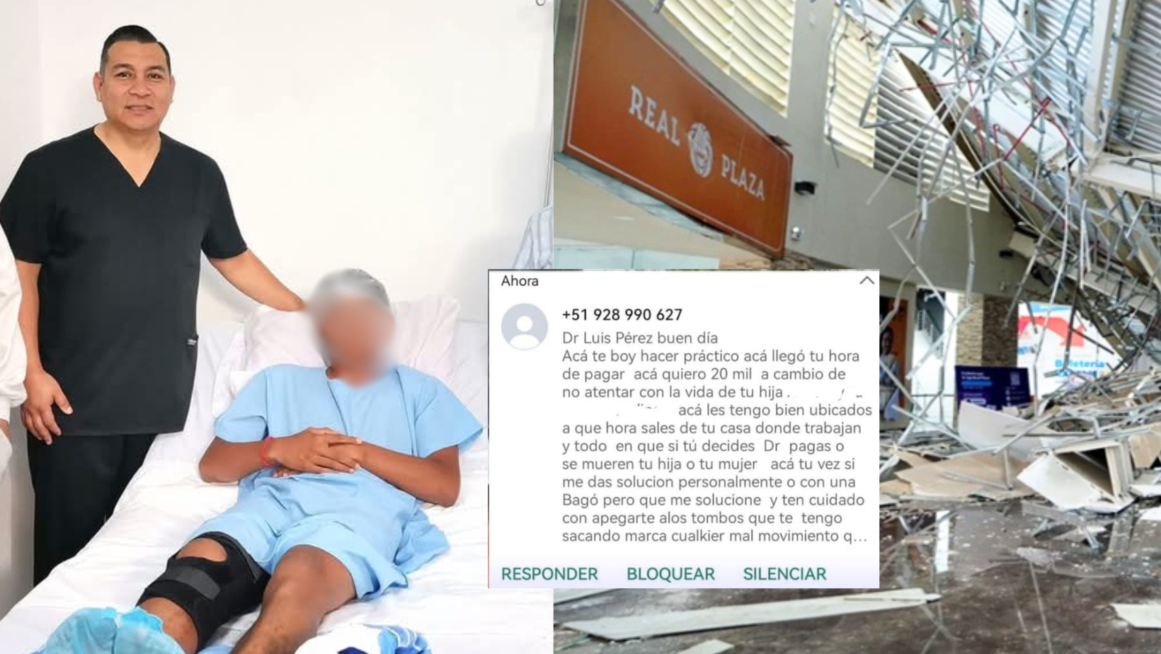 ¡VIVE UNA PESADILLA! El reconocido médico trujillano Luis Pérez Fernández, quien recientemente realizó una operación gratuita a un menor de edad afectado por el derrumbe en el centro comercial Real Plaza Trujillo, ha sido víctima de una cruel extorsión. Sicarios le exigen S/ 20 mil para no atentar contra su vida.