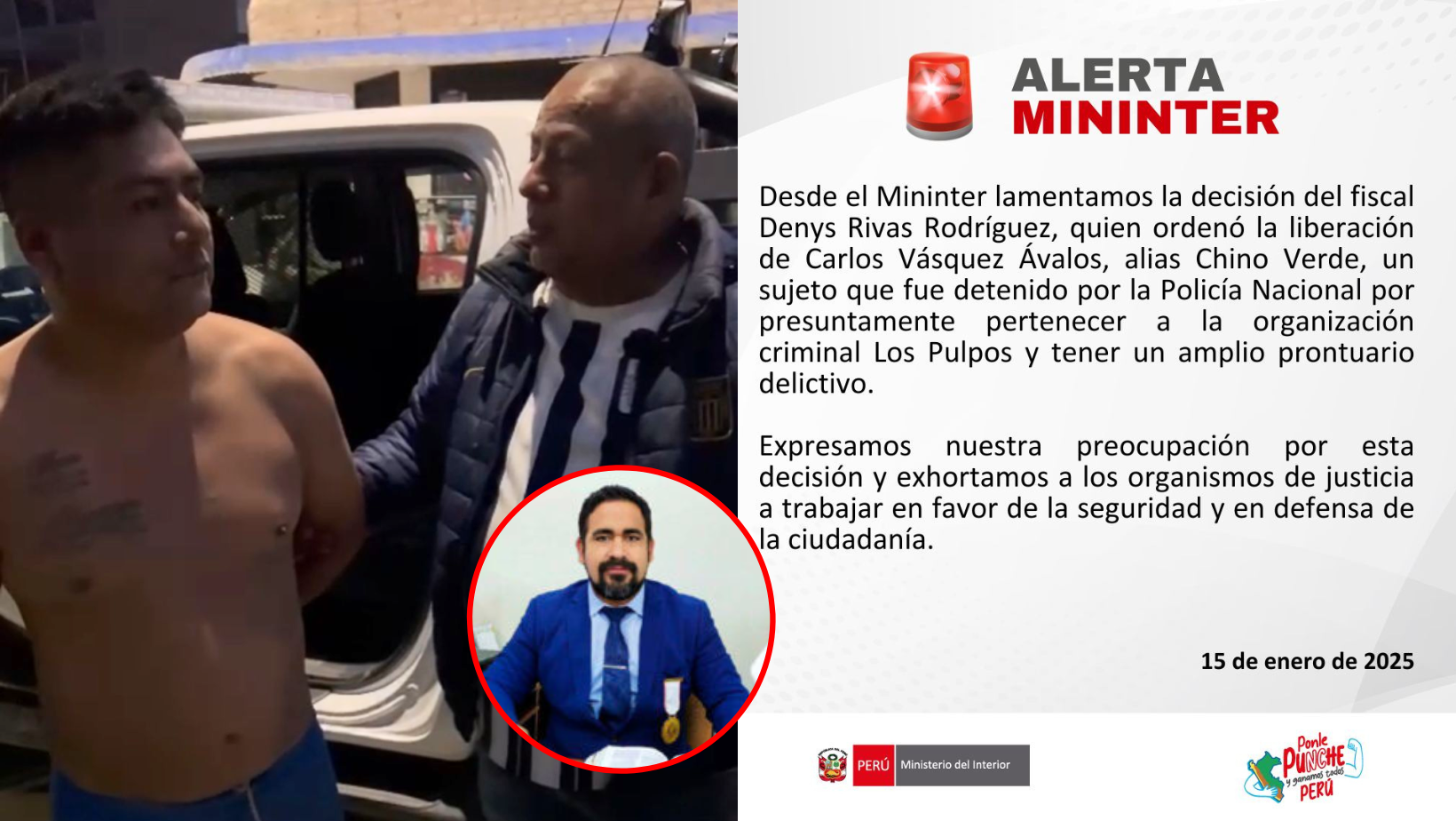 “Desde el Mininter lamentamos la decisión del fiscal Denys Rivas Rodríguez, quien ordenó la liberación del Carlos Vásquez Ávalos, alias ‘Chino Verde’… Expresamos nuestra preocupación por esta decisión…”, dice parte del documento virtual.
