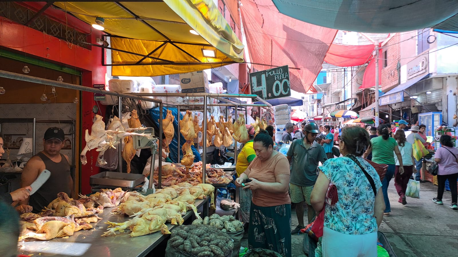 El precio del pollo registró una disminución significativa en el mercado «La Hermelinda» de Trujillo desde el último 5 de febrero. Los compradores pueden adquirir el alimento a partir de S/ 4.00 hasta S/ 6.00 por kilogramo.